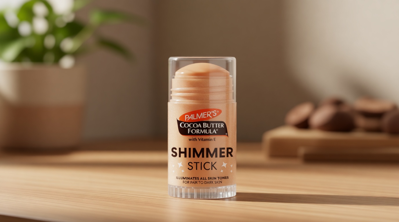 Palmer’s Cocoa Butter Formula Body Shimmer Stick is a radiant highlighter makeup for body glow that also provides 48-hour moisture. The product name highlights vitamin E, all skin tones and types, and dermatologist approved positioning.