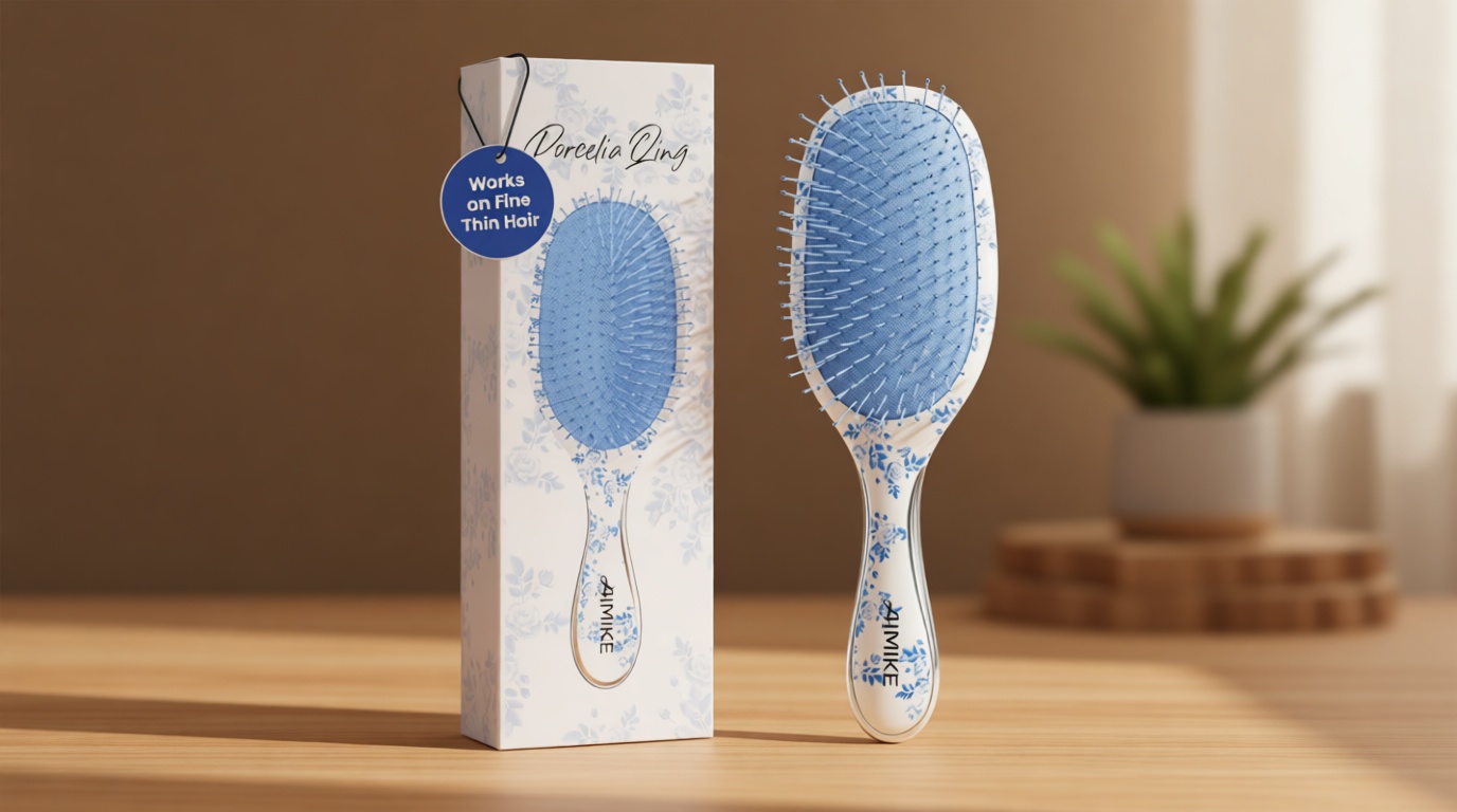 The AIMIKE Porcelia Qing Detangler Brush is clearly positioned as a gentle detangling brush for thin fine hair. Its soft FlexGlide bristles are intended to help with fast, gentle detangling.