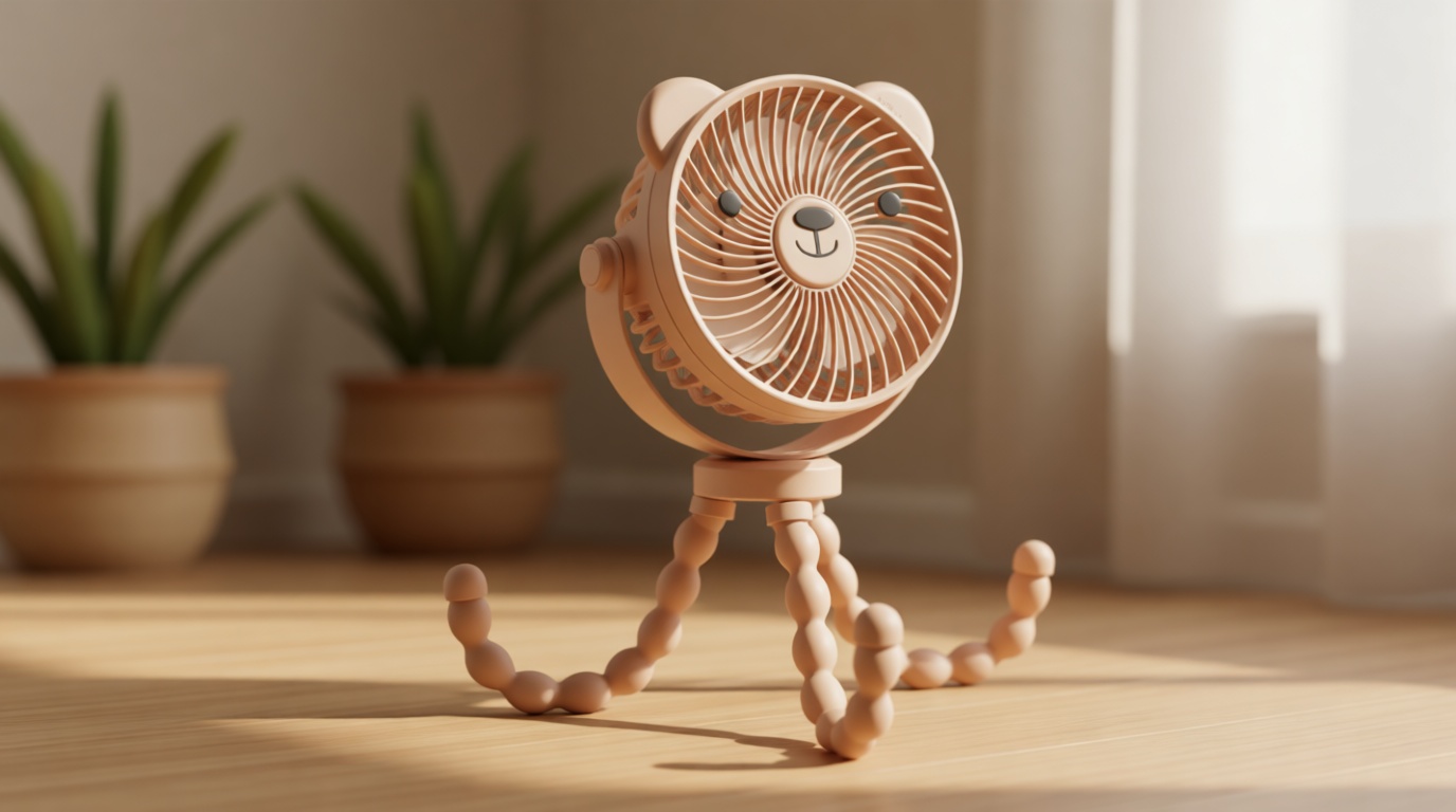 This AMACOOL version uses a flexible tripod clip-on style, which gives it more placement options across strollers, cribs, and travel gear. The product is clearly aimed at families who need a portable cooling solution that can move around easily.