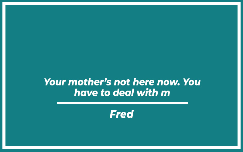 “Your mother’s not here now. You have to deal with me.” – Fred