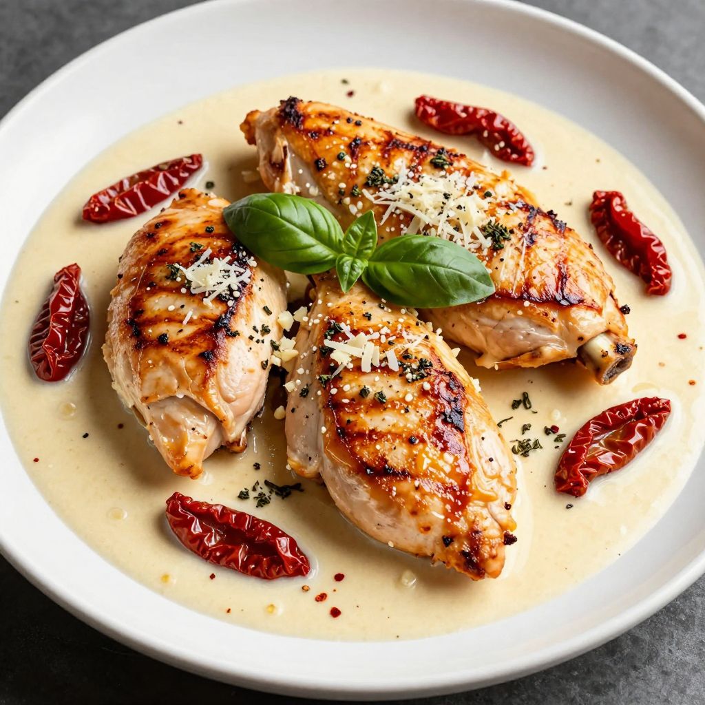 It’s a pan cooked chicken breast with a creamy sauce made from garlic, sun dried tomatoes, cream, and Parmesan.